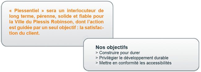 > La rénovation du quartier en profondeur et un haut niveau de service à la Ville du Plessis-Robinson et à ses habitants.